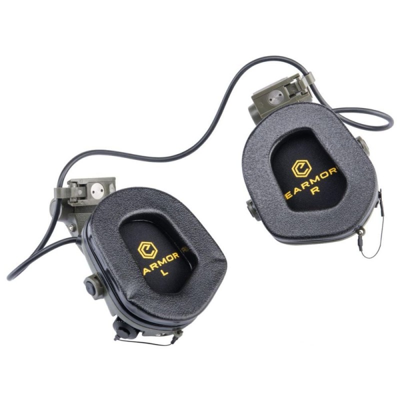 Активні захисні навушники з адаптерами типу «чебурашка» для кріплення на рельси шолому ARC; рівень шумоподавлення 22 дБ (NRR); час реакції: 1 мілісекунда; кнопки увімкнення/вимкнення та гучності; автоматичне вимкнення після 4 годин бездіяльності; два варіанти носіння: кріплення до рельсів шолома або жорстке наголів’я; клас захисту IP67; працює від 2 батарейок AAA – батарейки слід придбати окремо; в комплекті аудіокабель 3.5 мм і жорсткий чохол для транспортування; вага 350 г