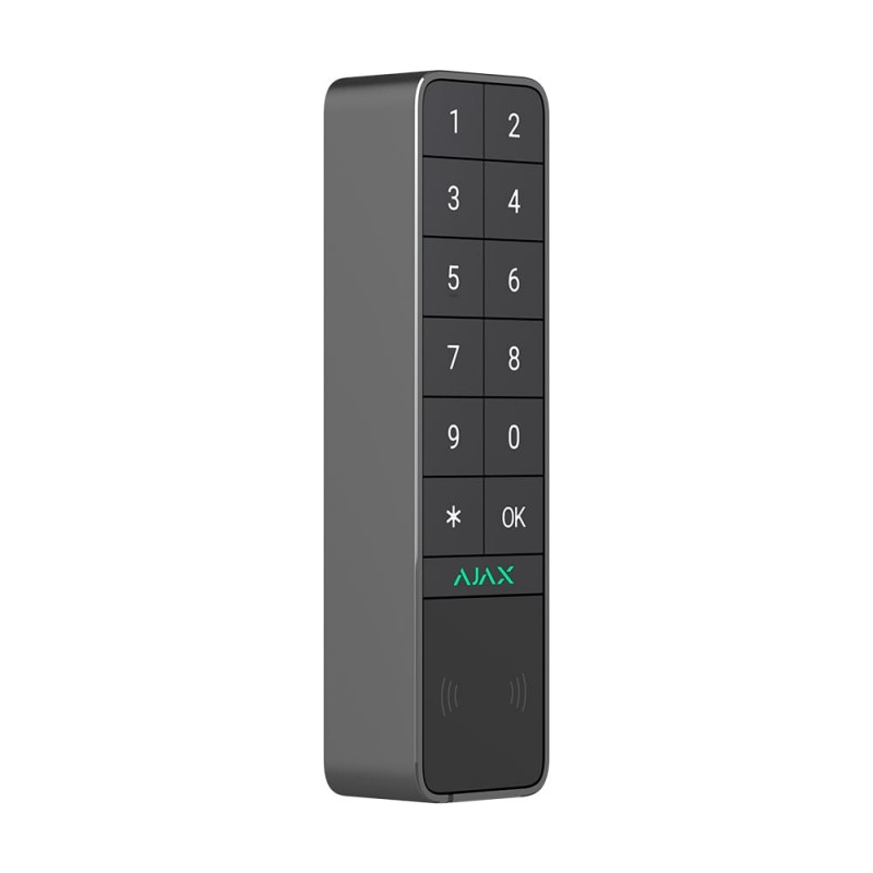 Бездротова клавіатура з можливістю зовнішнього встановлення; дальність зв'язку до 1700 м; протокол Jeweller; керування: коди / брелоки Tag / картки Pass / зі смартфона через Bluetooth; 50 персональних кодів доступу / 50 кодів незареєстрованих користувачів / 50 персональних кодів примусу / 1 код клавіатури; функціональна кнопка, працює в одному з режимів: тривога / глушіння пожежної тривоги / вимкнено; звукова та світлодіодна індикація; живлення 2 попередньо встановлені батареї CR123A, до 2 років роботи, або зовнішнє DC 12 В; клас захисту IP66; корпус з нержавіючої сталі; розміри 170 / 45 / 31 мм, вага 258 г
