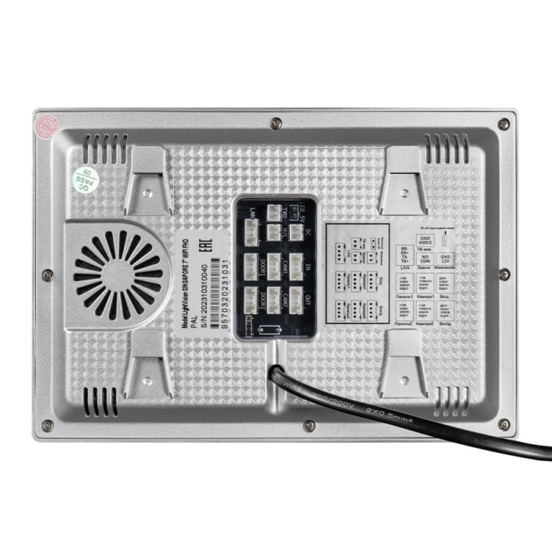WiFi-відеодомофон; 7-дюймовий сенсорний IPS-дисплей з роздільною здатністю 1024*600; підтримка WiFi (застосунок Tuya на iOS і Android); 2 панелі виклику + 2 відеокамери з відеовходом СVBS, АНD720Р / АНD1080Р, СVI720Р / СVI1080Р, TVI720Р / TVI1080Р; запис 1080P 25к/с за рухом; мелодії виклику в MP3, фоторамка, годинник і голосові повідомлення; адресний інтерком на 6 моніторів; N/O вихід для додаткового замка (воріт); підтримка карт пам'яті SD до 128GB (рекомендується FAT32) ≥class 10; живлення 220В / 12В (на вибір!); колір білий; розміри 185 / 126 / 24 мм