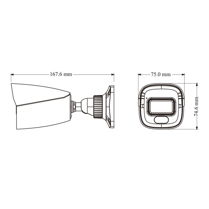 4Mp IP-відеокамера Full Color з функціями аналітики; матриця 1/2.9″ CMOS; роздільна здатність 4Mp (2688*1520); фіксований об’єктив f=2.8 мм; кути огляду 99° горизонтальний, 53° вертикальний; LED-підсвічування до 20 м, повнокольоровий режим зображення; відеокомпресія H.265+/H.265/H.264+/H.264; чутливість 0.0005 Люкс @F1.0, AGC увімкнено, 0 Люкс з LED; 3 відеопотоки; мережа: RJ45 100M; ONVIF, P2P; живлення DC12V/PoE, споживання 7 Вт; 1 аудіовхід, вбудований мікрофон; запис на microSD карту (до 512 ГБ); ступінь захисту IP67; габаритні розміри 167.6 / 75 / 74.6 мм; вага 0.4 кг