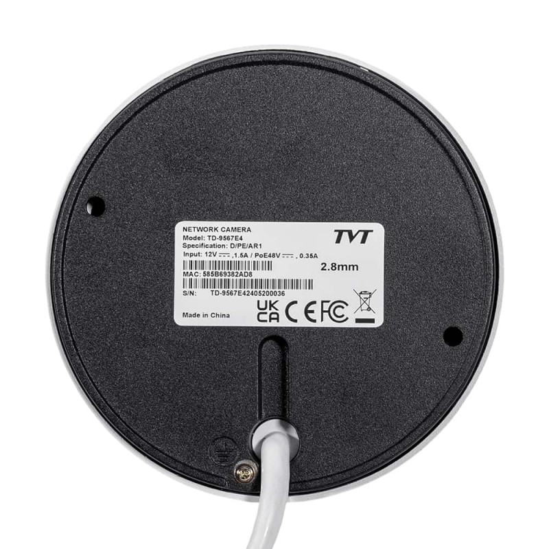 6Mp IP-відеокамера з функціями аналітики; матриця 1/2.5″ CMOS; роздільна здатність 6Mp (3296*1856); фіксований об’єктив f=2.8 мм; кути огляду: 104.5° горизонтальний, 54.5° вертикальний; ІЧ-підсвічування до 20 м; відеокомпресія H.265S / H.265+ / H.265 / H.264S / H.264+ / H.264; чутливість 0.008 Люкс @F1.6, AGC увімкнено, 0 Люкс з підсвічуванням; мережа: RJ45 100M; ONVIF; P2P; 1 аудіовхід, 1 аудіовихід, 2 вбудовані мікрофони; 1 тривожний вхід, 1 тривожний вихід; запис на microSD карту (до 512 Гб); живлення DC12V/PoE, споживання 6.5 Вт; ступінь захисту IP67; габаритні розміри Ø 110.4 / 62 мм; вага 0.418 кг