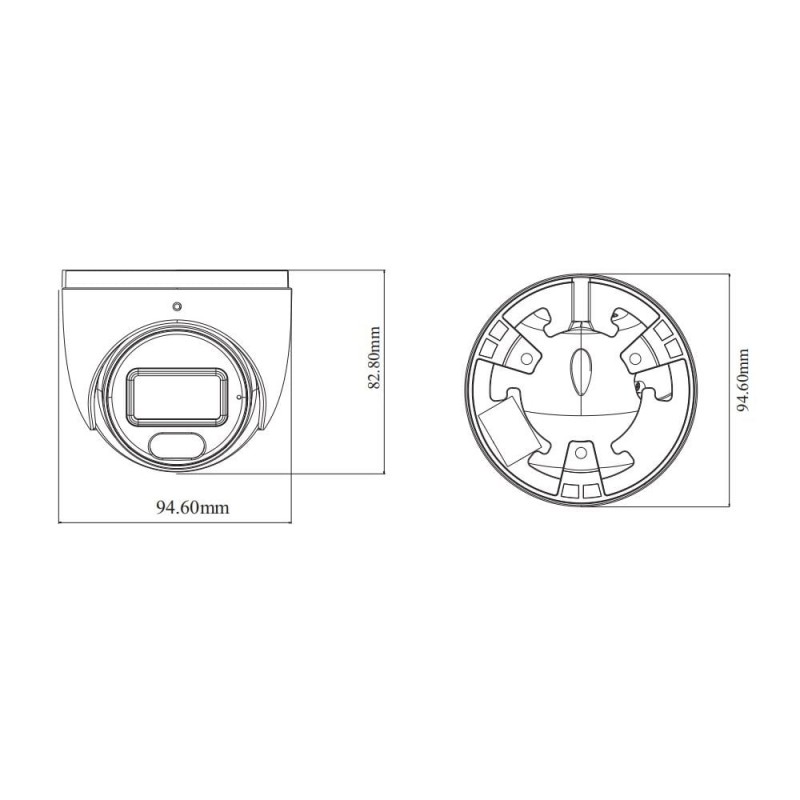 8Mp IP-відеокамера з функціями аналітики; матриця 1/2.7″ CMOS; роздільна здатність 8Mp (3840*2160); фіксований об’єктив f=2.8 мм; кути огляду 106.5° горизонтальний, 58.5° вертикальний; LED-підсвічування до 30 м та ІЧ-підсвічування до 30 м; відеокомпресія H.265+/H.265/H.264+/H.264; чутливість 0.01 Люкс @F1.6, AGC увімкнено, 0 Люкс з підсвічуванням; мережа: RJ45 100M; ONVIF; P2P; живлення DC12V/PoE, макс. споживання 6.8 Вт; 1 аудіовхід, вбудований мікрофон; запис на microSD карту (до 256 ГБ); ступінь захисту IP67; габаритні розміри Ø 94.6 / 82.8 мм; вага 0.45 кг