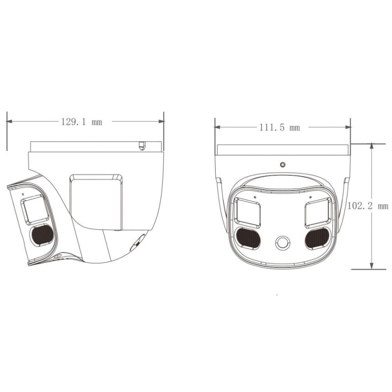 Панорамна 4Mp x2 IP-відеокамера з двома об’єктивами, з відеоаналітикою (детекція облич, виявлення людей/транспортних засобів, вхід/вихід із зони, підрахунок цілей); матриця 1/2.7″ CMOS x2; кут огляду горизонтальний 180°, вертикальний 66°; ІЧ-підсвічування до 30 м, LED-підсвічування до 20 м; відеокомпресія H.265+/H.265/H.264+/H.264; максимальна роздільна здатність 8Mp (4640*1760); 0.0032 Люкс@F1.6, 0 Люкс з LED; об’єктив f=2.8 мм x2; мережа: RJ45 100M; ONVIF, P2P; живлення DC12V/PoE; вбудовані 2 мікрофони і динамік, 1 аудіовхід / 1 аудіовихід; 1 тривожний вхід / 1 вихід; запис на microSD карту (до 256 ГБ); ступінь захисту IP66; габаритні розміри: Ø111.5 / 102.2 мм; вага 0.719 кг