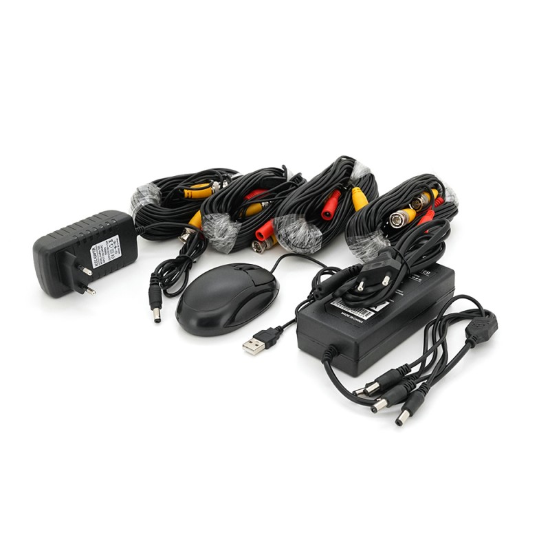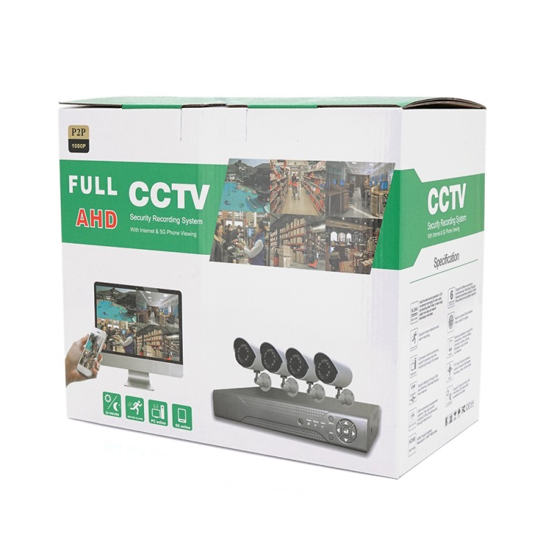 Комплект видеонаблюдения для самостоятельной установки в который входит 4 уличных видеокамеры на кронштейне , 4-х канальный видеорегистратор Кабель для камер 4штуки по 18 метров каждый Источник питания Характеристики: Камер Характеристики: • Матрица - 1/4″ СMOS • Чувствительность - 0.01 Lux • Горизонтальное разрешение - 2.0 MР • Корпус - металл/цилиндр • Стандарт защиты - IP67. • Мультиформатный режим - AHD/HDCVI/HDTVI/Analog • Дальность ИК-подсветки - до 20 метров(24 ИК-диода) • Питание - DC12V/290mA • Объектив -f - 3.6мм • Размеры - Ø 88×70 • Вес - 450 гр • Рабочие температуры -30…+60 С
