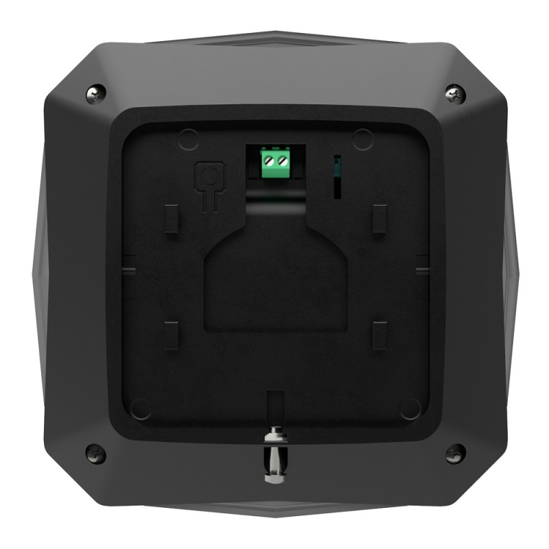 Бездротова вулична сирена для роботи у складі охоронної сигналізації Orion NOVA X. Дальність радіозв’язку до 3000 м на відкритому просторі; робоча частота 868-868.6 МГц; 7 режимів налаштування гучності, до 105 дБ; світлова індикація; живлення 4 батареї AA, до 3 років роботи, можливість зовнішнього живлення 12 В; клас захисту IP54; робоча температура від -25°C до +60°C; розміри 121 / 121 / 42 мм, вага 350 г; колір чорний