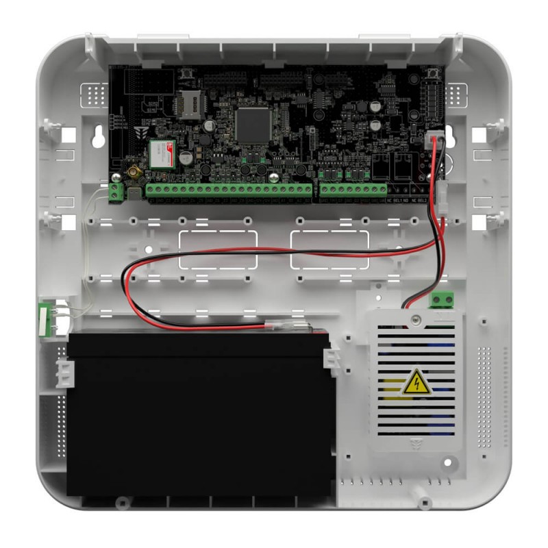 Дротова централь охоронної системи Orion NOVA на 8 дротових охоронних зон з можливістю розширення до 64 дротових зон або бездротових пристроїв, використовуючи модуль M-X; 4 базові виходи, 32 групи, 64 користувачі, до 8 клавіатур; канали зв’язку: 2G (GSM) 2x SIM-карти, Ethernet/WiFi – у разі підключення модулів M-NET+/M-WiFi; вихідний струм 850 мА; живлення основне 220 В, резервне від АКБ 7 / 9 А*год – купується окремо; вбудований блок живлення на 25 Вт; розміри 280 / 280 / 80 мм; вага 1.6 кг