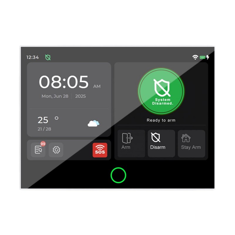 Комплект бездротової сигналізації з підтримкою WiFi 802.11 b/g/n (2.4 ГГц) та 4G LTE Cat-1, з віддаленим керуванням з мобільного застосунку Tuya, робоча частота 433 МГц. До комплекту входять: охоронна централь (хаб) з сенсорним екраном 7" та вбудованою сиреною, ІЧ-датчик руху, датчик відчинення вікон/дверей, 2 пульти дистанційного керування, зовнішня сирена. Можливості підключення: до 100 бездротових датчиків, 10 пультів керування, сирена. Сповіщення та дзвінок про тривогу надходять на 5 телефонів користувачів. Живлення DC 5 В через USB Type-C, резервна літієва акумуляторна батарея 3.7 В 5000 мА·год