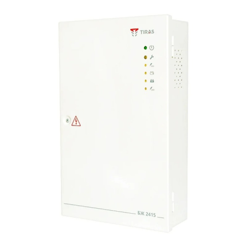 Блок живлення 24 В з максимальним струмом навантаження 1.5 А для живлення компонентів пожежної сигналізації та оповіщення; захист від перевантаження, перегріву, короткого замикання; сигнальні виходи для передавання сигналів несправності; контроль заземлення; захист акумулятора від глибокого розряду; живлення від АКБ на 7/9 або 18 А*год – купується окремо; металевий корпус; розміри 220 / 345 / 85 мм; вага 3 кг