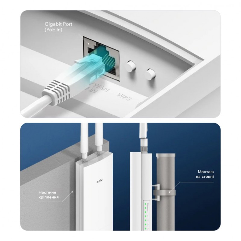 Точка доступу WiFi 6 2.5G дводіапазонна зовнішня; підтримка Mesh; двоядерний процесор ARM 1.3 GHz; 802.11ax/ac/a/b/g/n; 2402 Мбіт/с на 5 ГГц + 574 Мбіт/с на 2.4 ГГц; порти: 1x 2.5G Ethernet (підтримка PoE-in); 2 знімні антени; MU-MIMO; Beamforming; безшовний роумінг; Hardware Watchdog; живлення PoE 802.3at / 24-57 В Passive PoE (розпіновка +4,5; -7,8), блок живлення у комплекті; монтаж на стіну або стовп; клас захисту IP65; робоча температура від -40 до +65 °C; розміри 240 / 232 / 53.7 мм, антени 197.5 / 21.6 / 15.5 мм, висота з антенами 438 мм