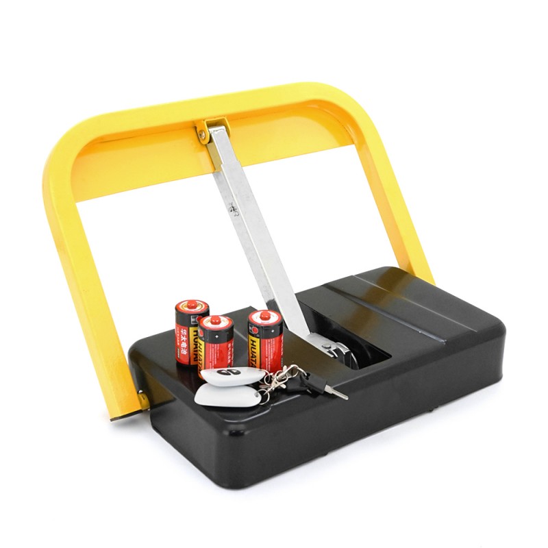 Блокиратор парковочного места , ограничитель парковки, барьер парковочный, автоматический барьер с дистанционным управлением с помощью брелока. Предназначен для использования на парковках около жилых и офисных зданий, в индустриальных зонах, отелях, аэропортах и пр. Особенности Возможность опускать и поднимать блокировочный рычаг с помощью встроенного мотора Управление дистанционное: поднимание / опускание блокиратора осуществляется только брелоком Ключи, входящие в комплектацию, используются для открытия крышки корпуса Функция Антикража: при попытке силой поднять / опустить барьер блокиратора - включается сирена Работа при температурах -10ºC ~+55ºC Изготовлен из высокопрочной стали Класс защиты IP66 Звуковая индикация событий Звуковое оповещение о разряде батарей Питание от 4-х батарей типа D ХАРАКТЕРИСТИКИ Тип устройства барьер парковочный Материал: Сталь SPCC Дальность управления: ⩽ 15 м Время открытия / закрытия: ⩽ 4 с Высота в разложенном состоянии: 390 мм Высота в сложенном состоянии: 75 мм Рабочая температура: -10°C ~+55°C Напряжение питания / источник питания DC 6 В (4 батареи типу D) Степень защиты IP66 Потребление тока в режиме ожидания: ⩽ 1 мА Максимальное потребление тока: ⩽ 1.2 А Габаритные размеры:40x45x8 cм Вес:7 кг