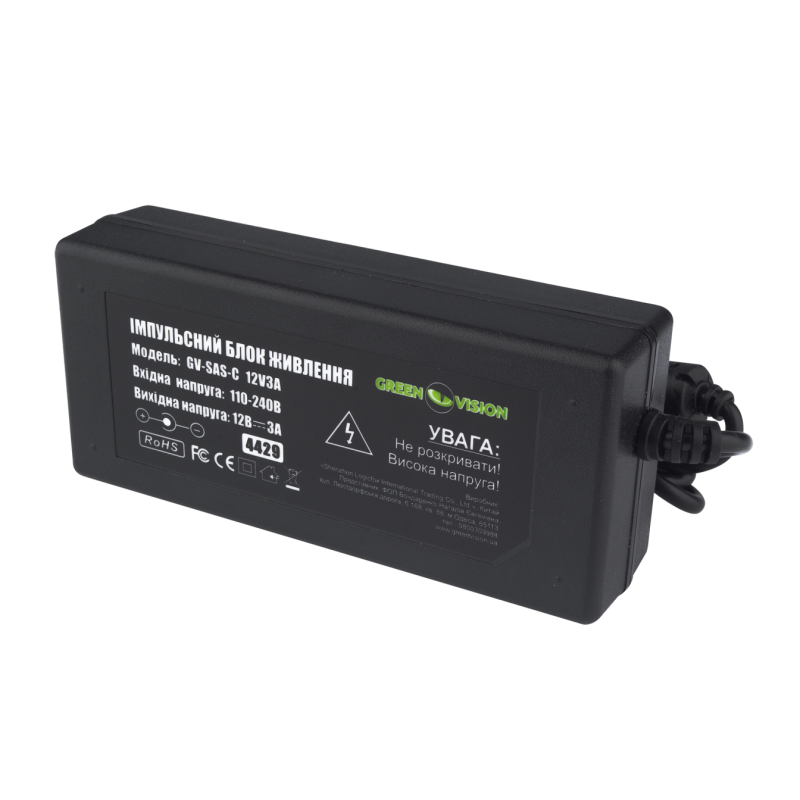 Входное напряжение 110-240 В, выходное напряжение 12 В