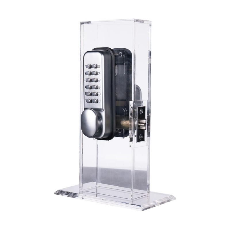 Замок кодовий механічний; не вимагає живлення; відімкнення за допомогою коду; універсальний, для всіх типів дверей; клас захисту IP66; матеріал корпусу сплав цинку; робоча температура від -20°C до +50°C; одинарна защіпка у комплекті; розміри 142 / 42 / 25 мм