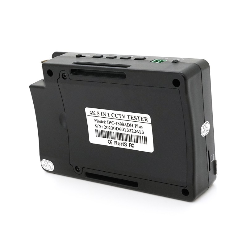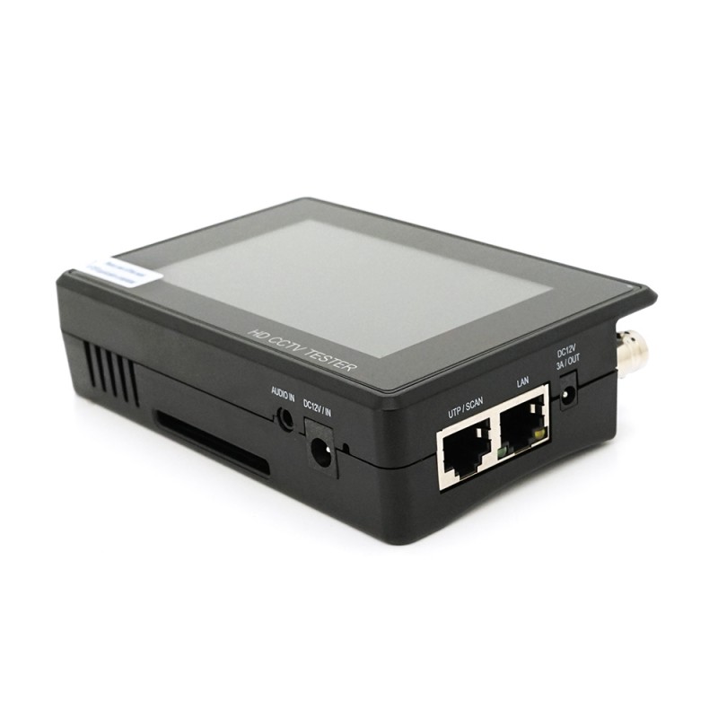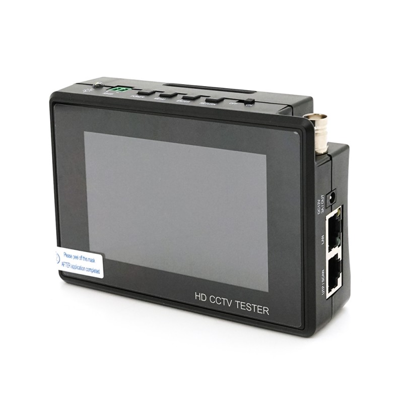 Сенсорный 4" 800х480 Поддержка IP (до 4K H.265), AHD (до 5 МП), TVI (до 8 МП), CVI (до 4 МП) и CVBS камер ПО ONVIF, Non-ONVIF, HIK (для тестериварония камер Hikvision), DH test tool (для Dahua) Функции Rapid ONVIF (быстрого поиска камер), сканирования IP-адресов, пингования, проверки POE Поддержка ONVIF PTZ и аналогового PTZ-управления, больше 30 протоколов: PELCO-P, PELCO-D и др