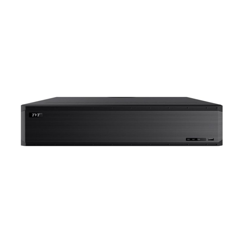 32-канальний мережевий відеореєстратор, з підтримкою інтелектуальної відеоаналітики, з максимальною роздільною здатністю 12MP; відеокодек H.265S, H.265+, H.265, H.264; запис: 12MP@20fps, 9MP/ 8MP / 6MP / 5MP / 4MP / 3MP / 1080P / 960P / 720P @25fps; вхідний/вихідний потоки 320Mbps/256Mbps; відеовихід: 2x HDMI (HDMI1: 4K, HDMI2: Full HD), 1x VGA (Full HD); аудіо: вхід RCA x1 / вихід RCA x1; тривожні: вхід 16 / вихід 4; база даних облич: 32 бібліотеки / 10000 фото облич, обчислення облич: 18 фотографій/сек; перегляд архіву камер: локально/мережею 16/16; мережа: RJ45 1000Mbps x2; інтерфейси: USB 2.0 x2, USB 3.0 x1, RS485; HDD: SATA x8 до 10 ТБ, E-SATA x1; живлення ATX 250W; розміри 445 / 436 / 90 мм