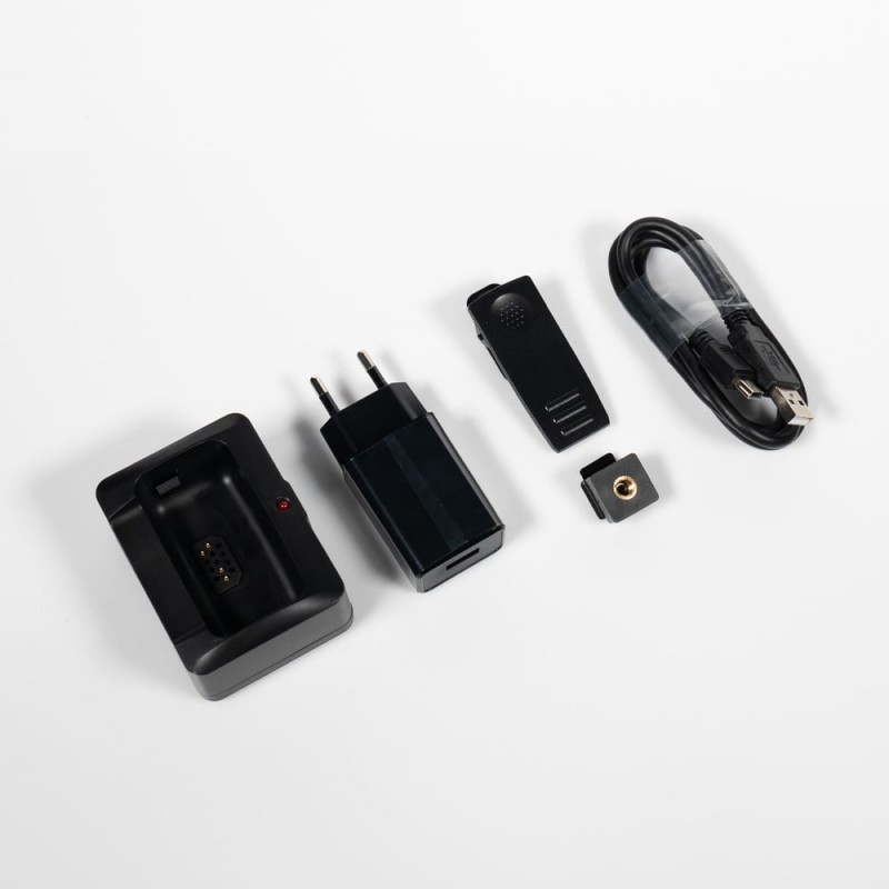 Блок живлення, Док-станція, Кабель USB, Кріплення, Нагрудний відеореєстратор