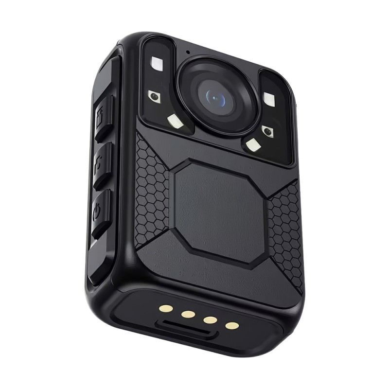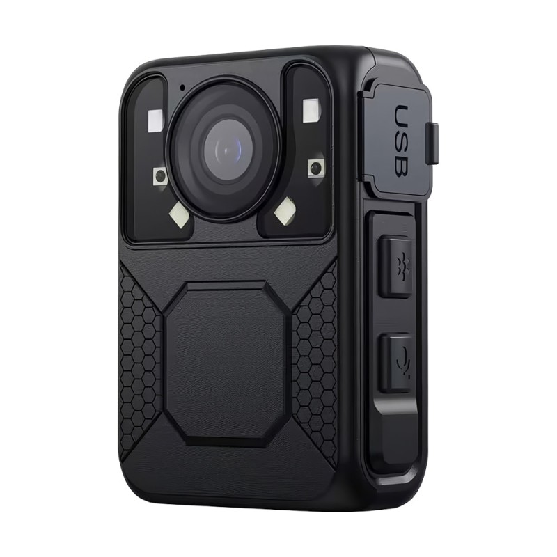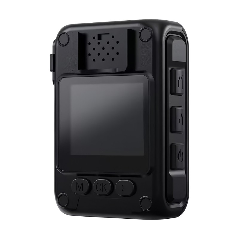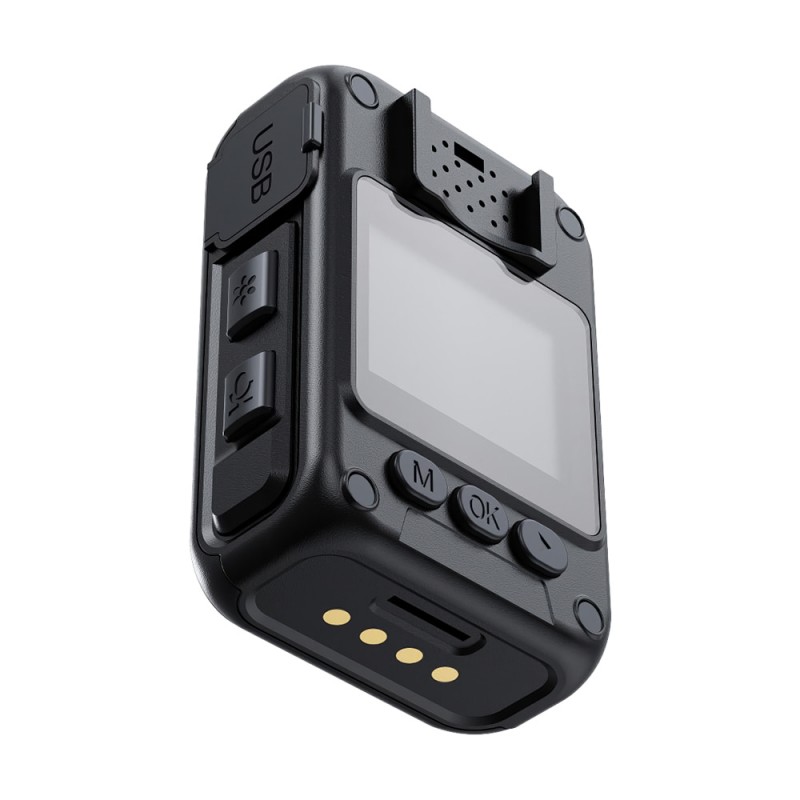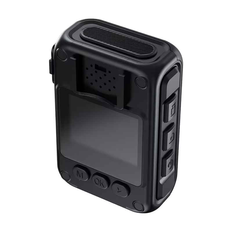 Нагрудний відеореєстратор з екраном, Type-C інтерфейсом. Якість запису відео: 2304x1296P/30fps, 1920x1080/30fps, 1280x720/30fps, 848x480/30fps. Роздільна здатність фото: до 12 Мп. ІЧ-підсвічування до 10 м. Запис на карту пам'яті до 256 ГБ (купується окремо). РК-екран 1.6". Вбудований мікрофон. Роз'єм: USB Type-C. Ємність батареї: 2350mAh. Час роботи: до 10 годин. Ступінь захисту IP65. Габаритні розміри: 70 / 47 / 26 мм. Вага: 99 г