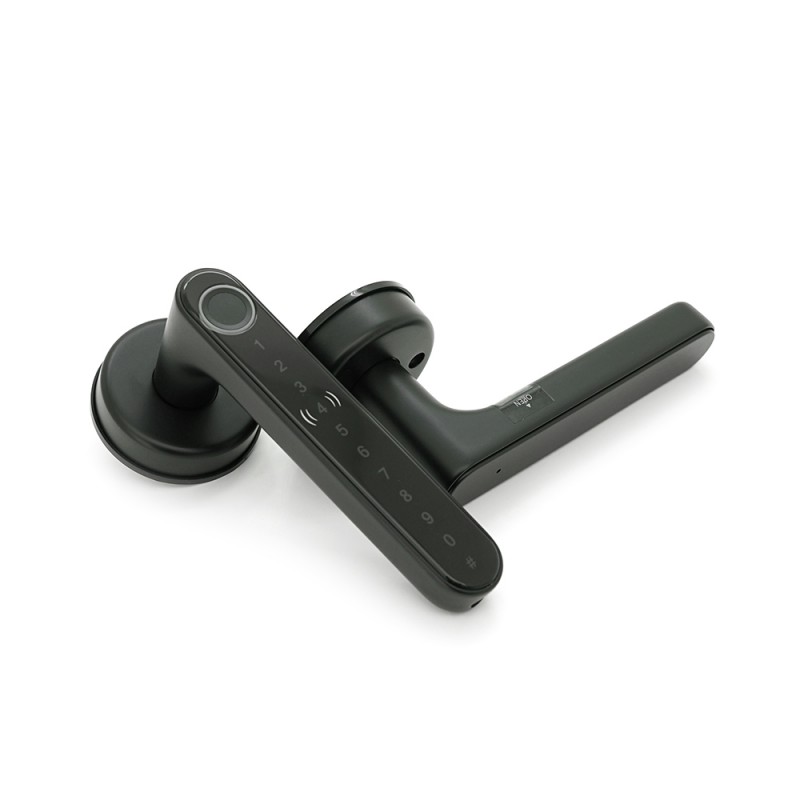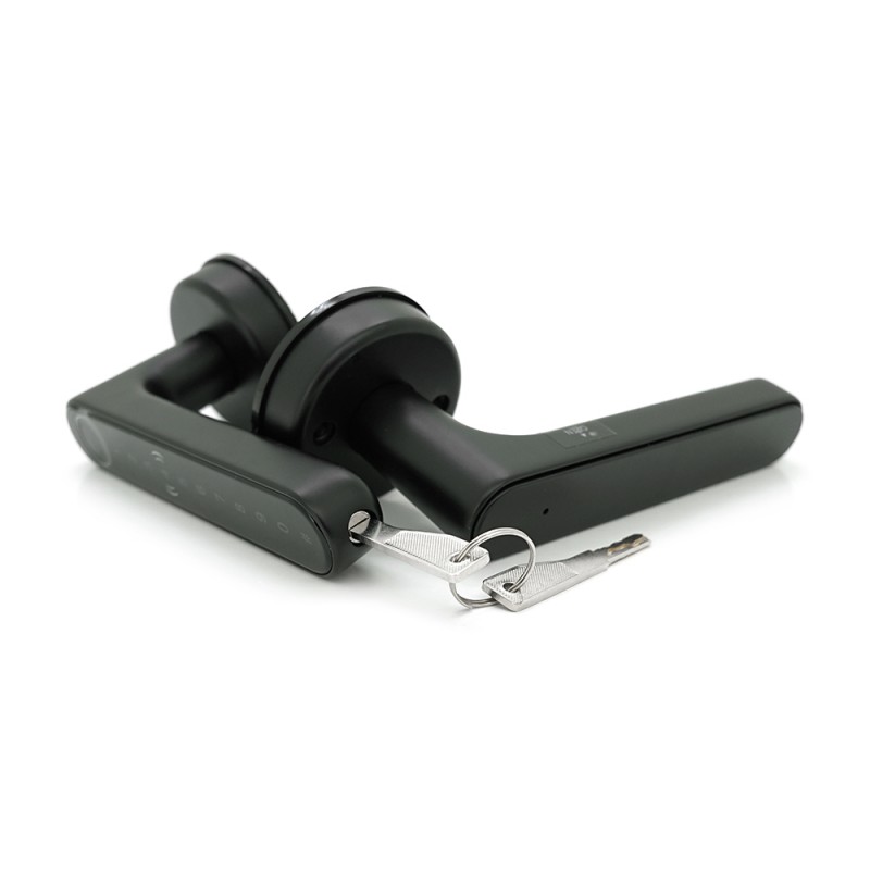Характеристики: 1. Питание: 4хААА батарейки 2. Варианты открытия: отпечаток пальца, код, карта, ключ, мобильное приложение 3. Материал: цинковый сплав 4. Размер врезной части: 60/70 мм 5. Совместимость: АРР-TTlock / TTh