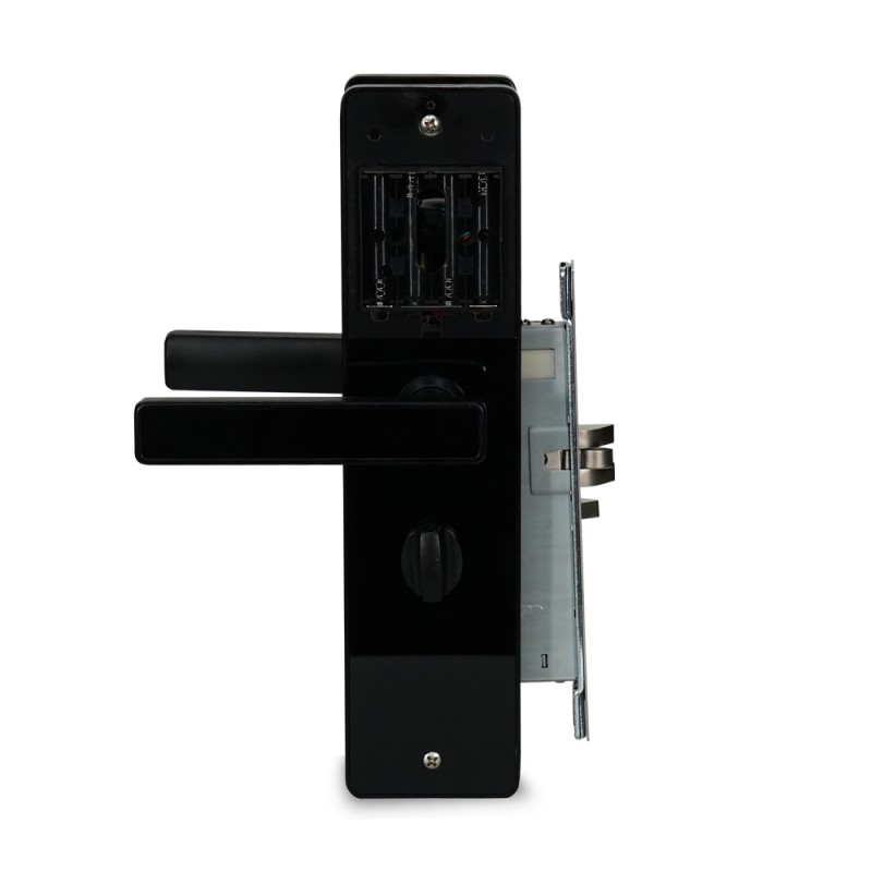 Автономний електромеханічний замок з Bluetooth і зчитувачем Mifare 13.56 МГц; відімкнення за допомогою: коду, картки, застосунку, ключа; кількість користувачів за карткою / кодом: 200 / 200; роз'єм microUSB; застосунок для роботи TTLock, TTHotel; живлення 4*АА батарейки; матеріал і товщина дверей: металеві/дерев'яні, 40-55 мм; матеріал корпусу нержавіюча сталь