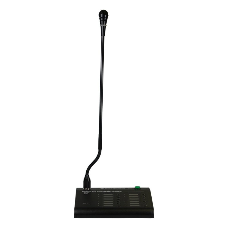 Дистанційний мікрофон, 12 зонний (з розширенням до 120 зон) , живлення 24 В, сертифікат EN54-16, частотний діапазон 80-16000 кГц; споживання енергії 3 Вт; зв'язок з контролером через кабельне з'єднання CAT6; дистанція зв'язку до 600 м; джерело живлення: 24 В; живлення від контролера EVAC-500; клас захисту IP31; матеріал корпусу метал; розміри 256 / 149 / 52 мм; вага 1.5 кг;