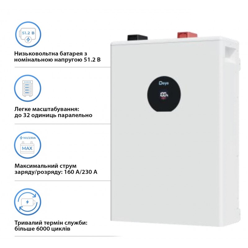 Аккумуляторная батарея DEYE SE-F16-C – это революционное решение для создания автономных энергосистем, идеально подходящее как для частных домов, так и для малого бизнеса. Оснащенная емкостью 16 кВт·ч, она обеспечивает стабильное и долговременное питание, гарантируя бесперебойную работу ваших устройств в любых условиях. Этот модуль накопления энергии отличается не только высокой производительностью, но и исключительной надежностью, что делает его идеальным выбором для современных пользователей, стремящихся к энергетической независимости.