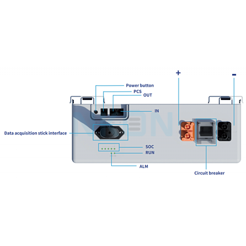 Корпус батареи обладает высокой энергетической плотностью, прочной конструкцией и степенью защиты IP21, что гарантирует стабильную работу при температурах от -20 °C до +55 °C. Встроенная интеллектуальная система BMS с активным предохранителем постоянно контролирует состояние элементов, предотвращая перенапряжение, короткое замыкание и перегрев.