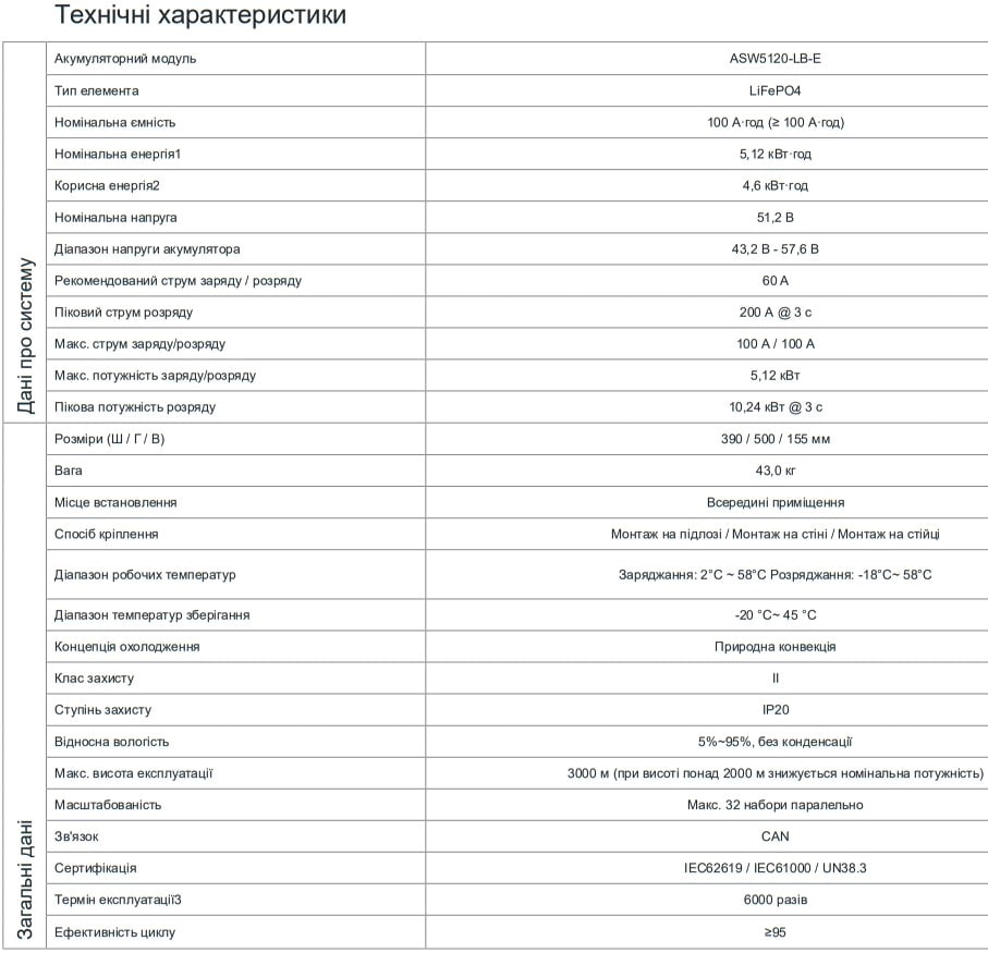 Solplanet ASW 5120-LB-E поддерживает быстрые заряды и разряды до 1C, с кратковременной перегрузочной способностью 2C, обеспечивая стабильную работу и длительный срок службы. Система управления батареей (BMS) контролирует состояние каждой ячейки и защищает аккумулятор от повреждений. Благодаря мониторингу и балансировке на уровне элементов, она контролирует каждую часть системы, обеспечивая стабильную и эффективную работу со временем. Он идеально подходит для интеграции с гибридными инверторами Solplanet, обеспечивая максимальную энергоотдачу и бесперебойную работу в любых условиях.