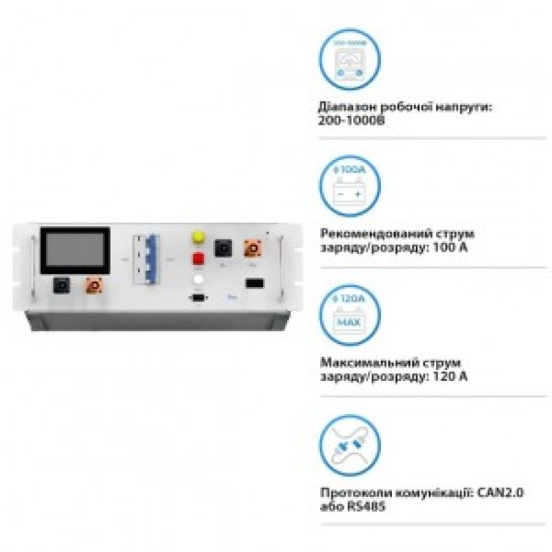 В отличие от универсальных решений, BOS-G-PDU-2 полностью адаптирован под линейку BOS-G PRO. Он обеспечивает идеальную синхронизацию всех подключённых батарей, оптимизируя заряд и разряд каждого модуля. Установка и подключение происходит по принципу plug-and-play — минимум ручной настройки, максимум эффективности и контроля. Один блок управления позволяет подключать от 5 до 17 аккумуляторных блоков BOS-G-Pack5.1 PRO. Максимальная емкость одного кластера из 17 блоков BOS-G-Pack5.1 PRO составляет 87 kWh. Этот контроллер обеспечивает мониторинг, защиту и балансировку батарей, поддерживая рабочее напряжение в диапазоне от 200–1000 В постоянного тока, благодаря чему он способен адаптироваться к разным энергетическим системам. А номинальный ток заряда и разряда - на уровне 100А, при этом пиковый ток может достигать 120А, гарантируя стабильную и эффективную работу системы, даже при максимальных нагрузках.
