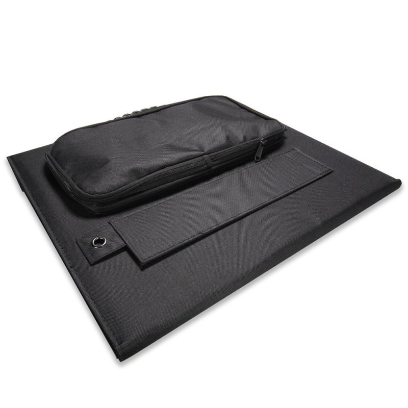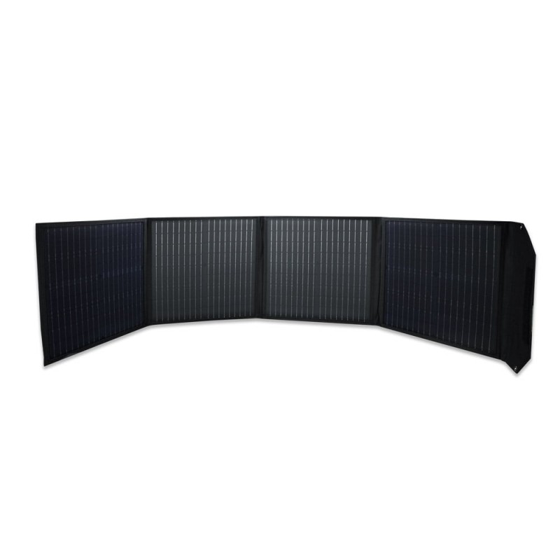 Монокристалічна розкладана сонячна панель для автономної роботи або в складі зарядних станцій Kraft; максимальна потужність панелі 100 Вт; напруга холостого ходу 24.2 В; струм короткого замикання 5.4 А; номінальна напруга 20.5 В; номінальний струм 4.88 А; вихідний роз’єм живлення GX20 2pin; розмір в розкладеному стані 1680 / 425 мм, транспортувальний розмір 425 / 375 мм