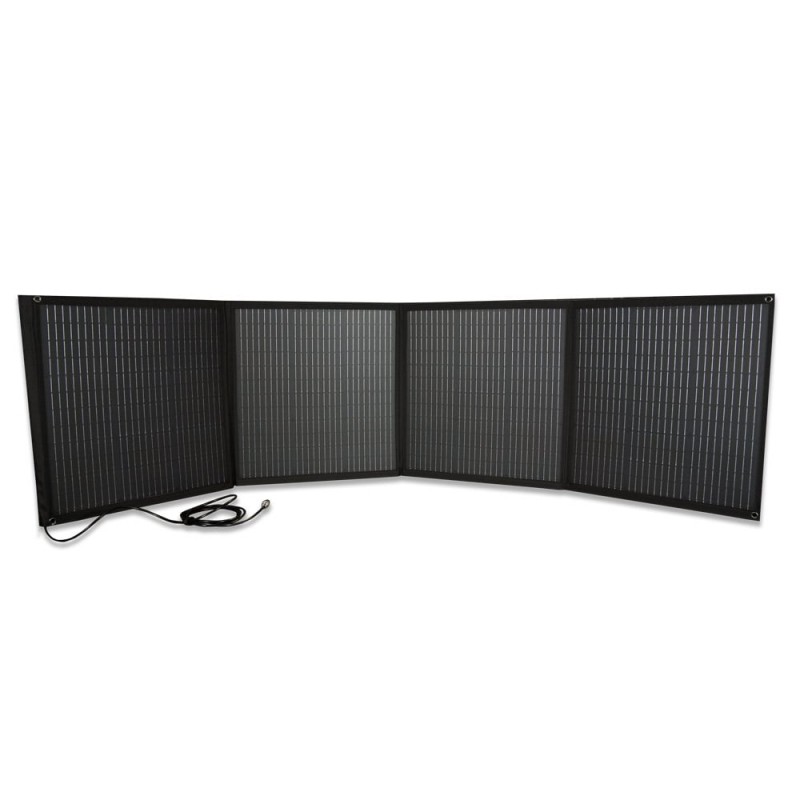 Монокристалічна розкладана сонячна панель для автономної роботи або в складі зарядних станцій Kraft; максимальна потужність панелі 200 Вт; напруга холостого ходу 24.2 В; струм короткого замикання 10.7 А; номінальна напруга 20.5 В; номінальний струм 9.7 А; вихідний роз’єм живлення GX20 2pin; розмір в розкладеному стані 2205 / 570 мм, транспортувальний розмір 570 / 546 мм