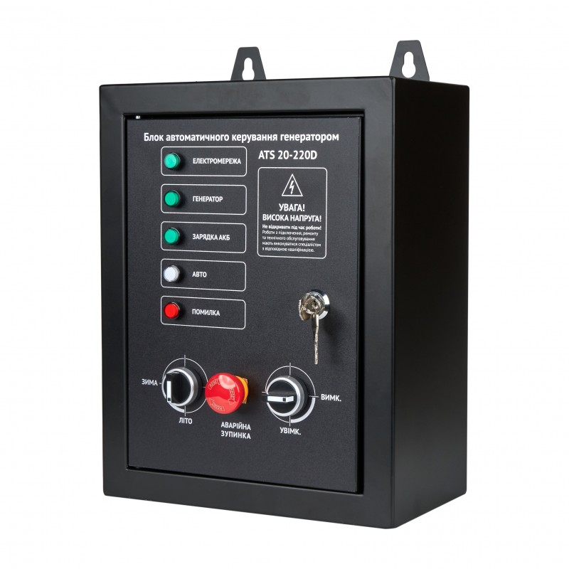Опис Блок керуючої автоматики Hyundai ATS-20-220D Aпризначений для перемикання живлення зі стандартною електромережою на генератор. Блок автоматично переходить на генераторное живлення при зупинці подачі електрики. Також можливий варіант переходу назад в разі відновлення живлення в мережі. Блок керуючої автоматики Hyundai ATS-20-220D встановлюється на бензиновіці генератори, а саме на серії HHY 7050FE, HHY 9050FE, Комплектація: Блок автоматики Інструкція користувача Упаковка
