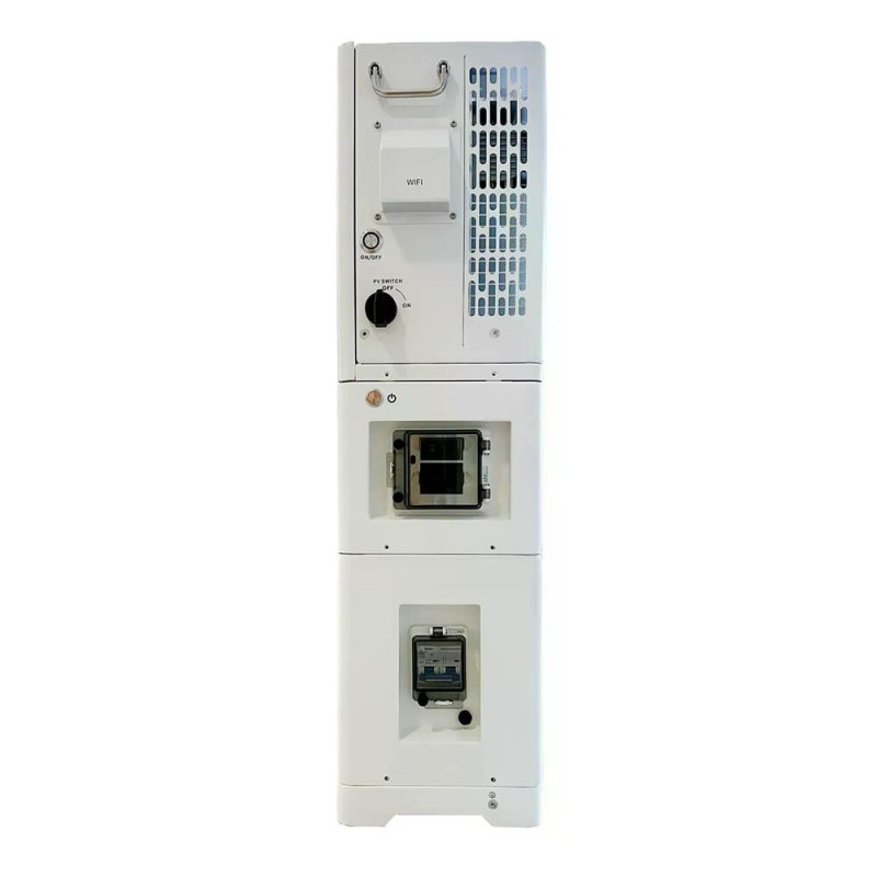Deye AI-W5.1-6 P1-EU-B — это современный однофазный низковольтный гибридный инвертор мощностью 6 кВт, являющийся ключевым компонентом модульной системы хранения энергии «всё в одном» (All-in-One) серии AI-W5.1, и спроектирован для систем автономного и резервного электропитания. Этот прибор объединяет функции инвертора, контроллера заряда и ИБП (источника бесперебойного питания), позволяя эффективно управлять энергией от солнечных панелей, сети и аккумуляторов. Инвертор идеально подходит для жилых и коммерческих объектов, обеспечивая автономное и сетевое электроснабжение с возможностью резервного питания. Основная особенность — простота подключения («Plug-In»), когда инвертор легко стыкуется с совместимыми аккумуляторными модулями без использования внешних соединительных кабелей.