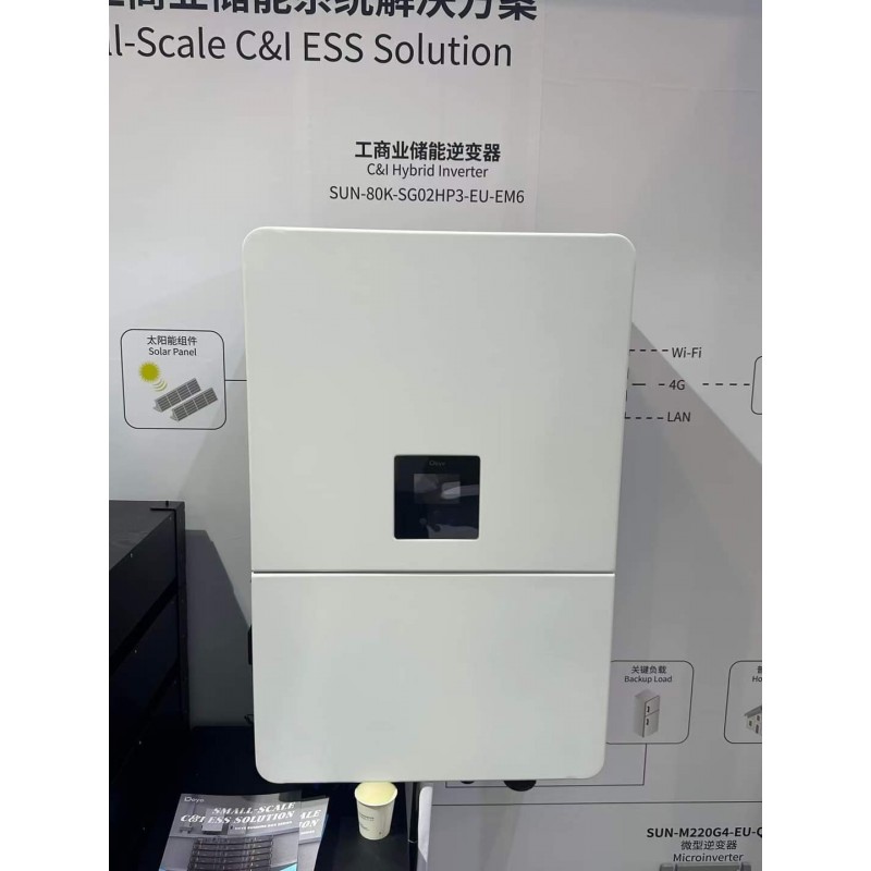 Гибридный инвертор DEYE SUN-80K-SG02HP3-EU-EM6 – это мощный трехфазный высоковольтный гибридный инвертор с 6 MPPT-трекерами для максимального сбора солнечной энергии. Этот высокоэффективный инвертор сочетает в себе передовые технологии и надежность, что делает его идеальным выбором для крупных коммерческих и промышленных объектов. Инвертор работает с номинальной мощностью 80 кВт и обеспечивает максимальную эффективность до 97,6%. Благодаря своему высокому КПД и интеллектуальному управлению зарядом, это идеальное решение для больших энергетических систем, которым необходим стабильный источник энергии. Инвертор поддерживает параллельную работу до 10 инверторов и совместим с высоковольтными литий-ионными батареями, обеспечивая отличную производительность при переменных нагрузках. Так же устройство можно использовать в системах источников бесперебойного электропитания.