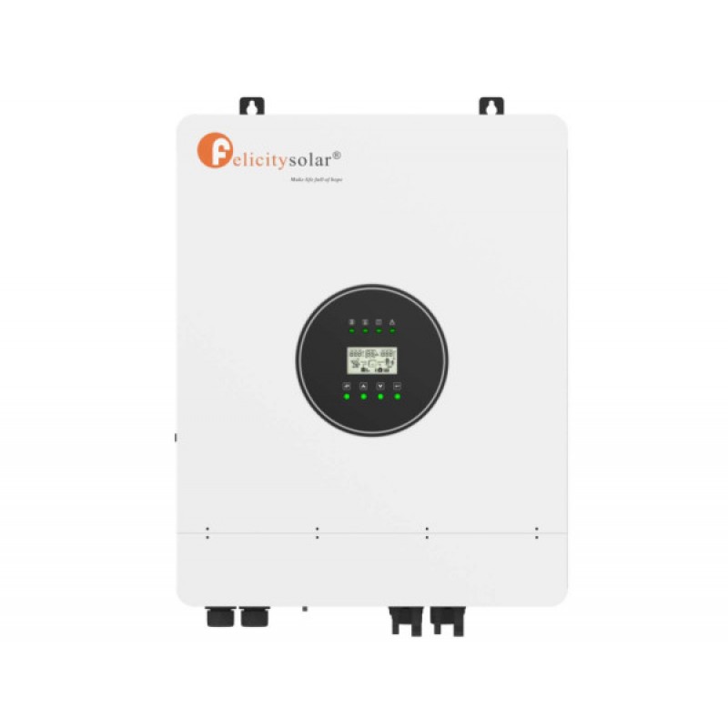 Высокая эффективность и надежность: Солнечный инвертор гибридной сети felicity solar оснащен контроллером MPPT, обеспечивающим отслеживание максимальной точки мощности для эффективного преобразования солнечной энергии. Он также имеет класс защиты IP65 от пыли и воды, что повышает его долговечность и надежность в различных условиях окружающей среды.