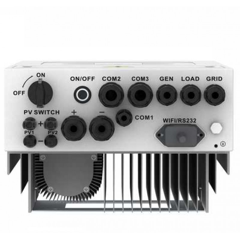Инвертор имеет ЖКИ дисплей с сенсорным управлением, через дисплей производятся все настройки, управления, установка конфигурации. Также в комплекте поставки WiFi модуль для подключения к облачному сервису мониторинга на базе SOLARMAN. Мониторинг позволяет следить за работой системы, просматривать графики за все время эксплуатации и практически по всем электрическим параметрам инвертора. Также статистика генерации, производимой солнцем, отданной потребителю и в сеть доступна на базовом ЖКИ дисплее.