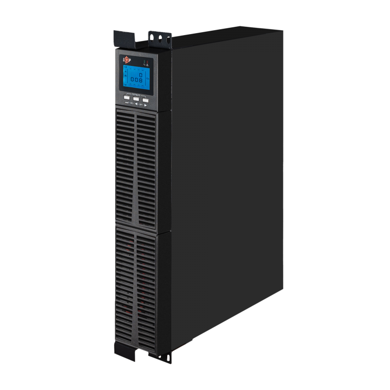 Корпус Smart-UPS LogicPower-1000 PRO(rack mounts) изготовлен из металлического сплава. На передней панели расположен LCD экран для контроля параметров работы устройства.