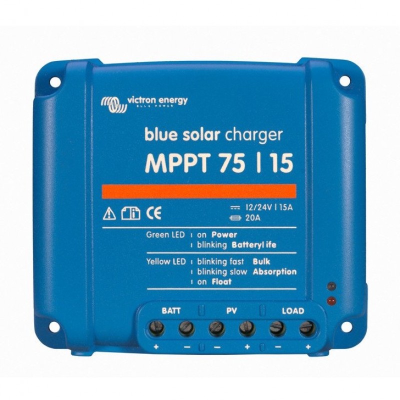 Victron Energy BlueSolar MPPT 75/15-Tr - сверхбыстрый MPPT контроллер c 12/24 В, током заряда 15А на основе передовых технологий, который улучшит сбор энергии до 30% по сравнению с контроллерами заряда PWM и до 10% по сравнению с более медленными контроллерами MPPT. Выход нагрузки защищен от короткого замыкания. Контроллер обладает высоким КПД при резко меняющейся интенсивности Солнца в условиях переменной облачности.