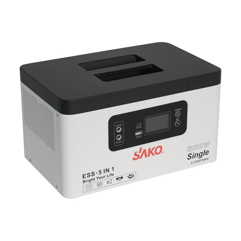 Портативне джерело живлення потужністю 500 Вт/230 В (чиста синусоїда), з режимом ДБЖ; LED-дисплей; вбудована LiFePO4 акумуляторна батарея енергоємністю 1004.8 Вт·год; вбудований зарядний пристрій 500 Вт; вхід для сонячної панелі 10-55 В 300 Вт макс.; вихід змінного струму: 2 порти 230 В 500 Вт; вихід постійної напруги: 2 порти 12В/2.5А (роз’єм 5.5*2.1 мм) загальною потужністю 60 Вт; порти USB: 1 шт. USB-A, 1 шт. USB-C; максимальний струм заряду/розряду АКБ 220 А; робоча температура -10°C~+50°C; розміри 325 / 210 / 183 мм, вага 13 кг