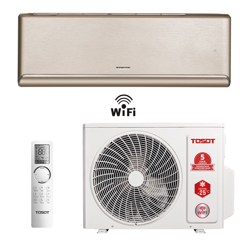 Кондиционер Tosot GD-24RG Naomi GOLDEN NOBLE - бытовой тепловой насос класса deluxe в эксклюзивном дизайнерском исполнении, с внутренним блоком серебристого цвета. Он запускается при -25 °C за окном, наделен возможностью теплого старта и функцией запоминания настроек. Он экологический и продуктивный, позволяет существенно экономить зимой и в межсезонье. Работает в нескольких режимах — фильтрация, осушение, вентиляция, обогрев и охлаждение. Подходит для установки в комнатах площадью до 70 м2.