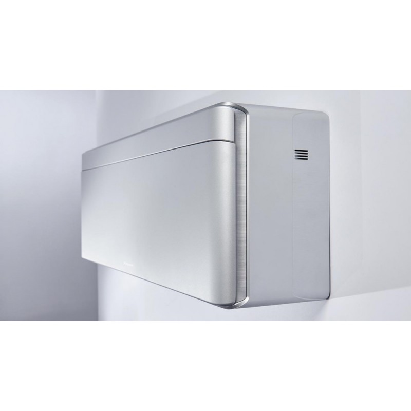 Сверхсовременный дизайн внутреннего блока Daikin FTXA20CS, выполненный в серебристом цвете, отлично подходит для большинства как жилых, так и коммерческих помещений. Он характеризуется как самый инновационный, высокотехнологичный и надёжный кондиционер, имеет один из самых тонких внутренних блоков на рынке, глубиной всего 189 мм. Совершенно плоская передняя панель подчеркивает его эстетический дизайн и привлекательность. Оснащение автоматическим приводом открытия лицевой панели обеспечивает визуальный доступ к воздухораспределительным заслонкам, создающими эффект Коанда для оптимизированного распределения воздушного потока, а при выключении кондиционера этот же привод вернёт панель в её изначальное положение. Закрытая лицевая панель скрывает воздушные заслонки, создавая впечатление единой плоскости внутреннего блока.