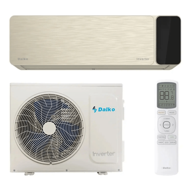 Daiko DSG-GDH12/DSG-GDI12 VIP Gold – инверторный кондиционер, предназначен для охлаждения и обогрева небольших помещений до 35 м2, квартир, небольших офисов, кафе. Он сочетает современные технологии, надежную сборку и удобное управление через пульт ДУ и скрытый LED дисплей, что позволяет легко управлять режимами и быстро реагировать на изменения температур. Работает на экологичном фреоне R32. Благодаря компактным размерам и современному дизайну, эта модель гармонично впишется в любой интерьер.