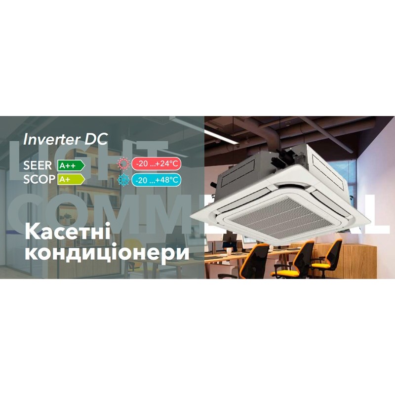 Полупромышленные кассетные кондиционеры демонстрируют передовые технологии, высокую надежность и энергоэффективность. Они обладают элегантным и современным дизайном, который легко впишется в любой интерьер, так как на виду остается только декоративная панель внутреннего блока. Благодаря своим компактным размерам и небольшой высоте, кассетные кондиционеры будут легко монтироваться в потолок, обеспечивая равномерное распределение воздуха по всему помещению.