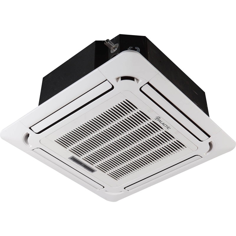 Кассетный инверторный кондиционер Galactic GBZ36MLQ-W/GCZ36MLSQ-W новой серии Explorer DC Inverter R32. Полупромышленная сплит-система для бытовых и коммерческих помещений площадью до 100 м². Подпотолочного, открытого или закрытого монтажа, с дистанционным ИК-пультом. Подходит для создания комфортных условий в помещениях общего пользования среднего размера (магазины, офисы, банки и т.д.). Класс энергоэффективности в режиме охлаждения A++, в режиме обогрева А+. Управление кондиционером производится с помощью проводного пульта. Инфракрасный пульт управления -опция. Wi-Fi – опция. Гарантировано работает на охлаждение при температуре от -15 до +50 °C и на обогрев от -15 до +24 °C. Фреон R32. В кондиционер встроен дренажный насос: высота подъема конденсата 850 мм. Сертифицирован в Украине.