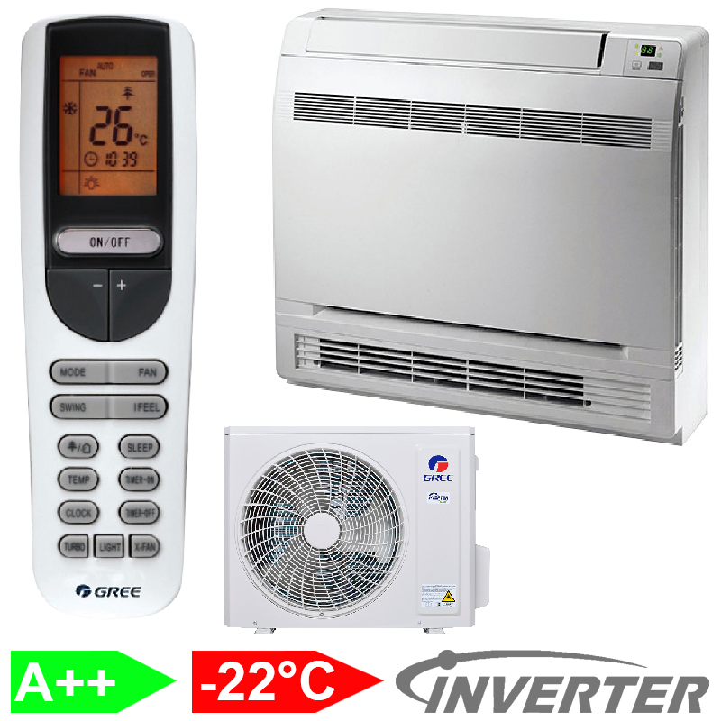 Всего производитель GREE предлагает 3 модели: типоразмеры 09, 12 и 18. Все они инверторные с классом энергопотребления А++ в режиме охлаждения, и А+ в режиме обогрева и имеют пять рабочих скоростей. Консольные сплит-системы – лучший вариант для обогрева, функция подачи теплого воздуха не только вверх, а и вниз одновременно – способствует быстрому и комфортному обогреву помещение. Работают блоки GREE на современном фреоне R32.