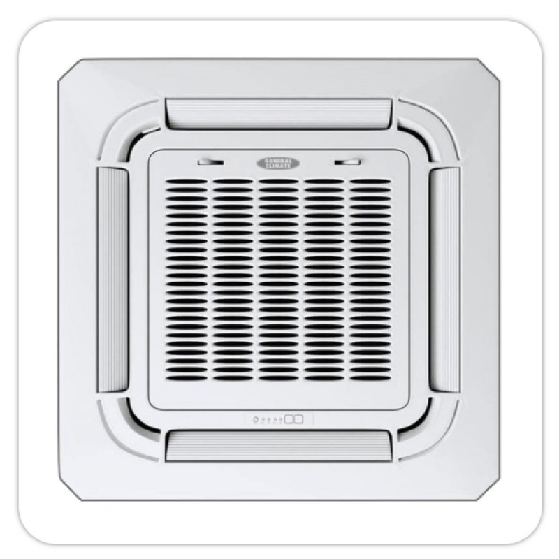 Кассетный кондиционер серии MCA3 c компрессором DC-inverter, относится к приборам промышленного и полупромышленного классов и предназначен для поддержания заданных параметров воздуха в помещениях большой площади: торговых залах; заведениях общественного питания; выставочных комплексах и галереях; цехах и мастерских. Испаритель внутреннего блока «кассетника» расположен по периметру внешней панели квадратного корпуса, что позволяет вентилятору гнать холодный воздух в четыре стороны одновременно. За счет этого установленный в подвесном потолке в центре помещения блок способен разом «накрывать» гораздо большую площадь, чем обычный настенный прибор.