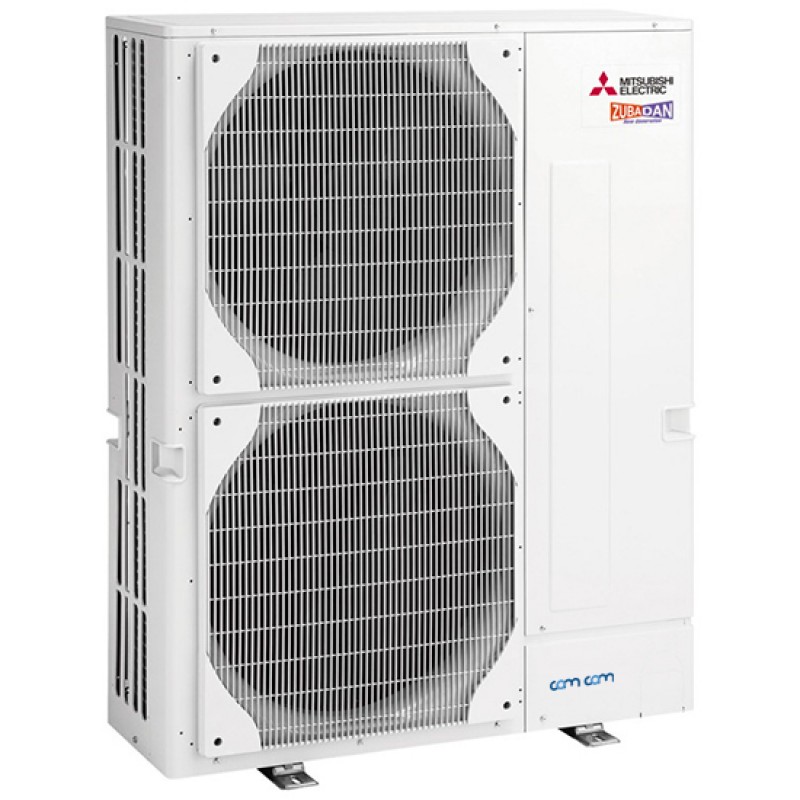Mitsubishi Electric PLA-M100EA/PUHZ-SHW230YHA – это 3-фазный полупромышленный кассетный 4-х поточный кондиционер инверторного типа серии ZUBADAN, (что с японского обозначает «супер обогрев»). Известно, что производительность кондиционеров, использующих для обогрева помещений низкопотенциальное тепло наружного воздуха, уменьшается при снижении температуры воздуха. И это снижение весьма значительное: при температуре -20°C теплопроизводительность на 40% меньше номинального значения, указанного в спецификациях приборов и измеренного при температуре +7°C. Именно по этой причине кондиционеры не рассматривают в странах с холодными зимами как полноценный нагревательный прибор. Отношение к ним коренным образом изменилось благодаря тепловым насосам Mitsubishi Electric на основе технологии Zubadan.