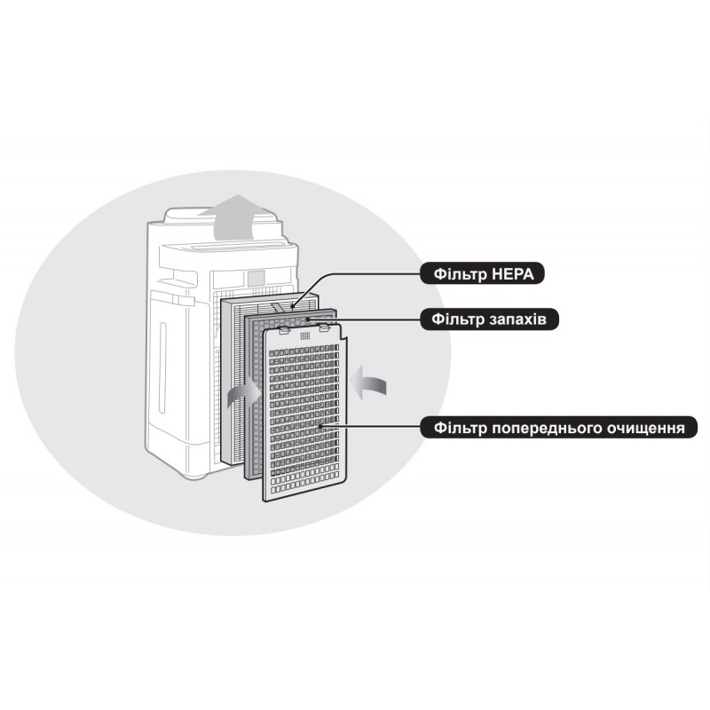 Как работает очиститель воздуха Sharp KC-D40EUW: Его деятельность базируется на 3-этапной системе фильтров, каждый из которых выполняет свою миссию с потрясающей эффективностью: