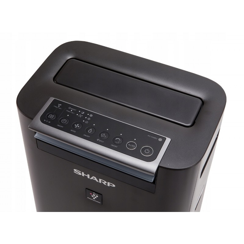 Благодаря им очиститель воздуха Sharp KC-G40 может работать в автоматическом режиме, учитывая не только качество воздуха, но и время суток. Пользователи также могут выбрать одну из трёх скоростей фильтрации, используя семицветный индикатор, отображающий уровень загрязнения воздуха. В зависимости от скорости очистки, производительность составляет 60, 120 или 240 м³/ч. Устройство также оснащено гигростатом, что позволяет увлажнять воздух в автоматическом режиме. Максимальная производительность увлажнителя составляет 440 мл/ч, а объём резервуара для воды — 2,5 литра. Sharp KC-G40EUW подаёт сигнал о необходимости наполнения резервуара.