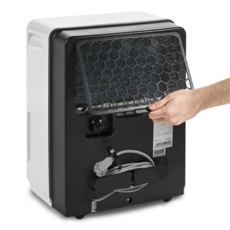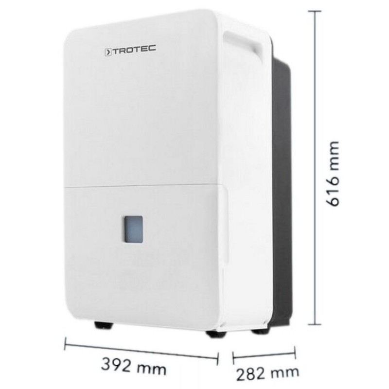 Особенностью модели является функция комфорта – температурозависимое осушение. Осушитель автоматически регулирует уровень влажности в соответствии с температурой в помещении, поддерживая оптимальный баланс без ручных настроек. Это особенно удобно при использовании программируемых систем отопления или при изменении температуры в течение суток. Если температура комнаты меняется днем или ночью, осушитель автоматически подстраивает свою производительность осушения.