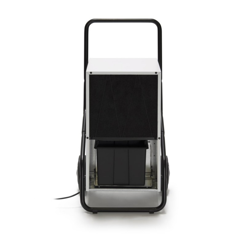 Осушитель Trotec TTK 350 S имеет металлический корпус с большими колесами, который служит не только для предотвращения порчи внешнего вида, но и имеет защитные свойства для механизма – пластиковое покрытие на металлической основе является подобием колпака, который не пропускает внутрь воду, брызги и пыль. Это профессиональный прибор с ротационно-поршневым компрессором, его можно транспортировать и хранить в любом положении и перемещать даже по лестничным пролетам. Он выдерживает любые испытания при использовании даже при низких температурах и демонстрирует эффективное осушение благодаря профессиональной системе автоматического оттаивания горячим газом. С помощью этой модели можно регулировать оптимальный уровень влажности в производственных помещениях, предотвращая повреждения оборудования и материалов, а также обеспечивая комфортные условия работы для персонала.