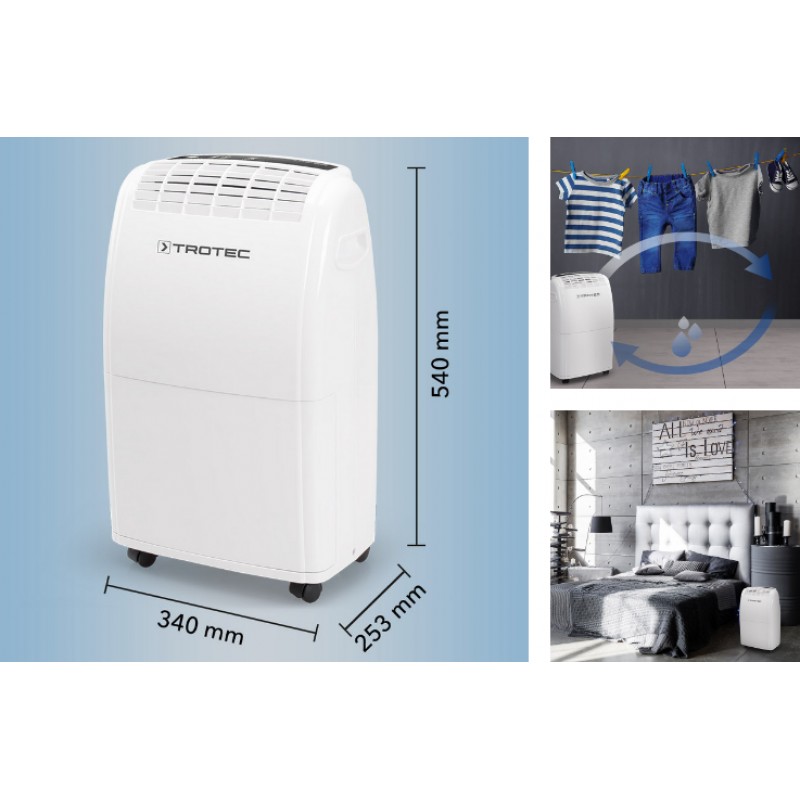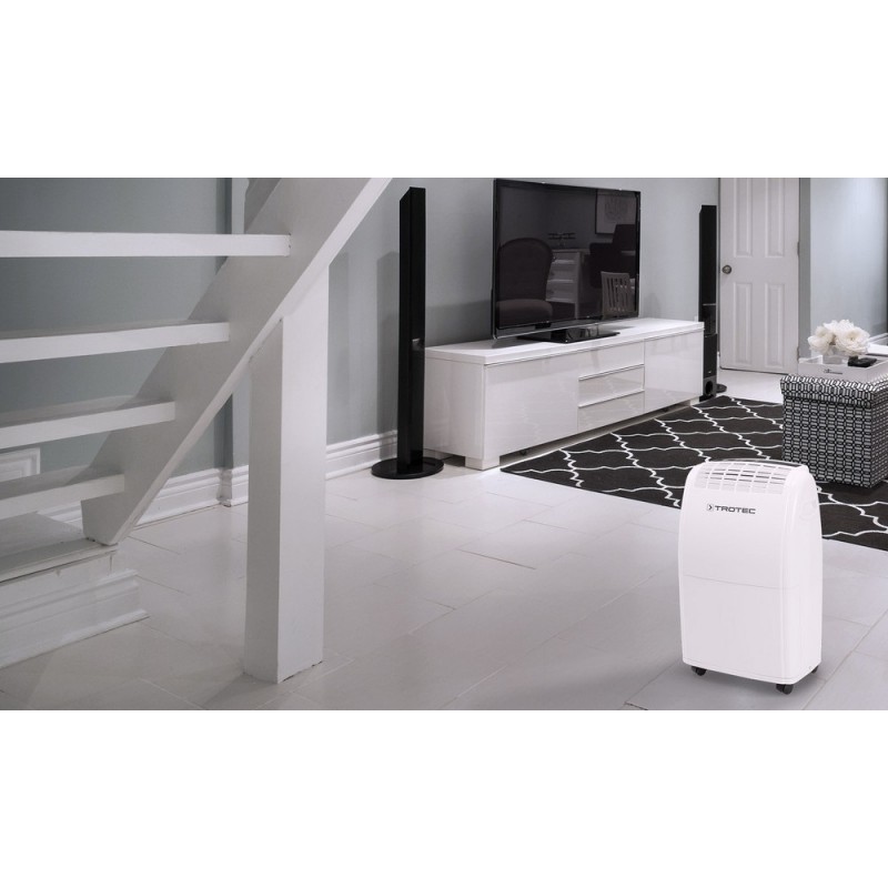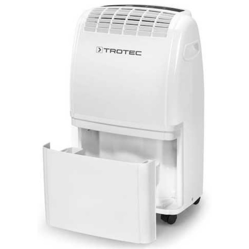 В зависимости от температуры и относительной влажности воздуха конденсирующая вода постоянно или периодически капает в ванну конденсата и через сливной патрубок выводится в расположенную под ней емкость. В ней для измерения уровня имеется поплавок. Для управления и контроля функционирования бытовые осушители TROTEC имеет табло управления.